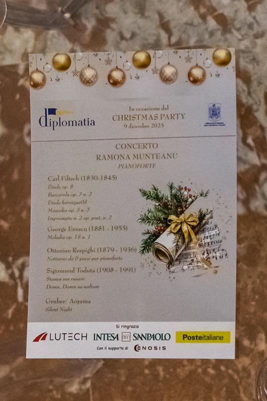 La serata è stata impreziosita dalla pianista romena Ramona Elena Munteanu, che ha offerto un momento musicale di grande qualità, particolarmente apprezzato dai partecipanti. La sua interpretazione, raffinata e intensa, ha aggiunto valore culturale all’evento e riflette l’attenzione che Diplomatia dedica al ruolo dell’arte nei rapporti tra i Paesi.