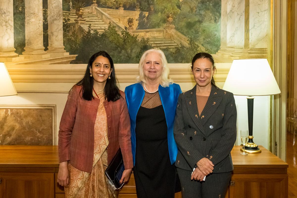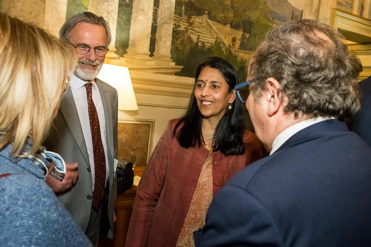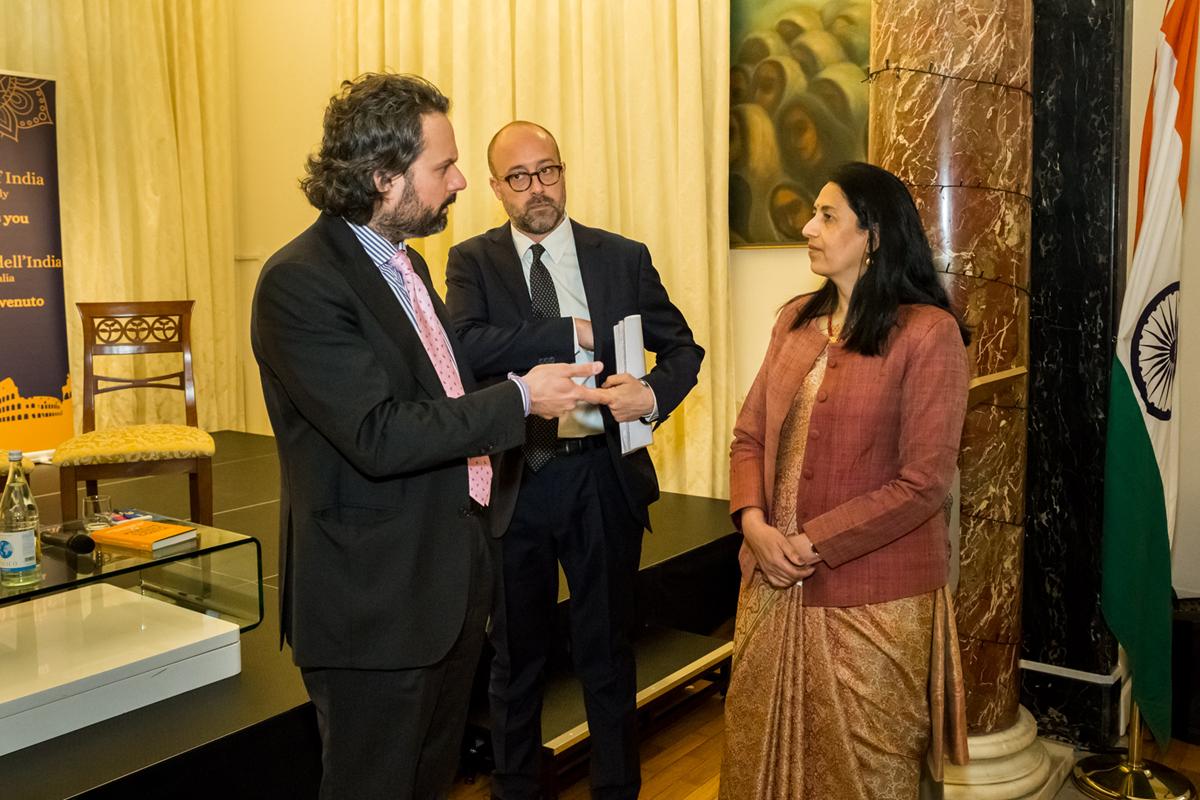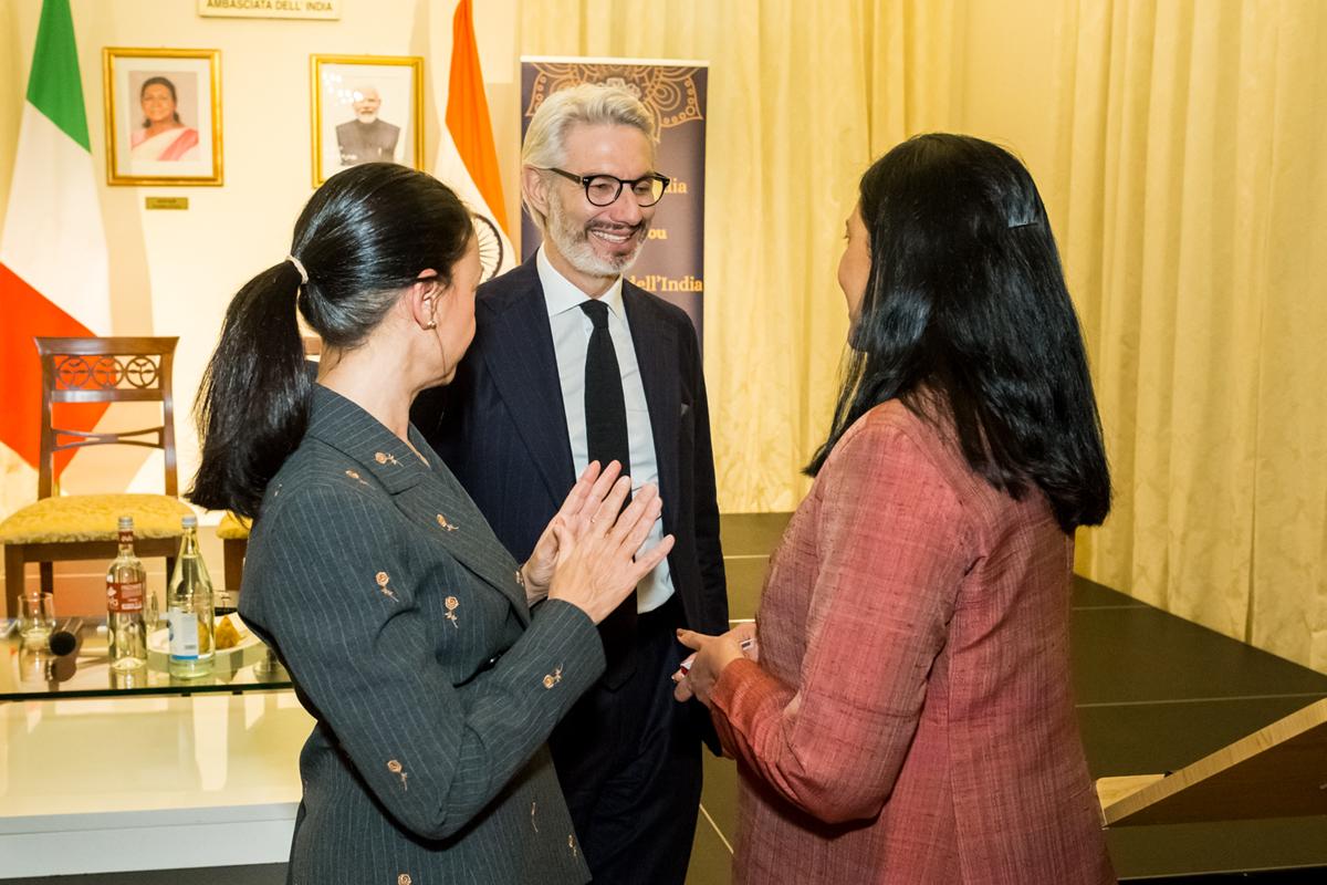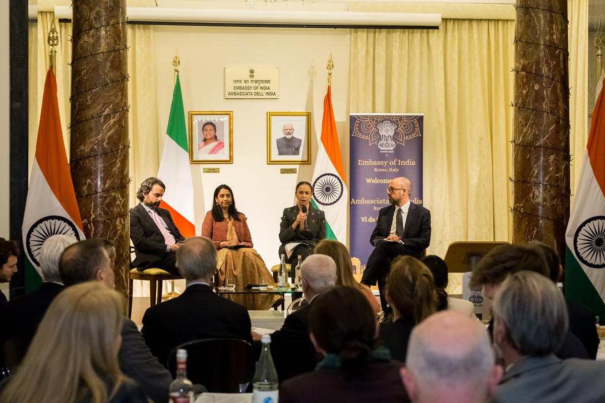L’evento è stato ospitato da S.E. l’Ambasciatrice Vani Rao, ambasciatrice dell’India a Roma: diplomatica di carriera dal 1994, già Ambasciatrice in Finlandia ed Estonia, prima di dirigere la Divisione Americhe a Delhi, responsabile delle relazioni dell’India con Stati Uniti, Canada e il Quad.